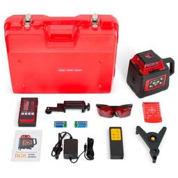 Дополнительная информацияв комплекте пульт ДУ с диапазоном действия 30 м и трегер; точность горизонтальная/вертикальная 0.1/0.15 мм/м, точность нижнего луча 0,3 мм/м; скорость вращения 0/300/600 об/мин