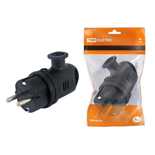 Вилка угловая Tdm с ушком каучук 2Р+РЕ 16А 250В IP44 SQ0612-0004