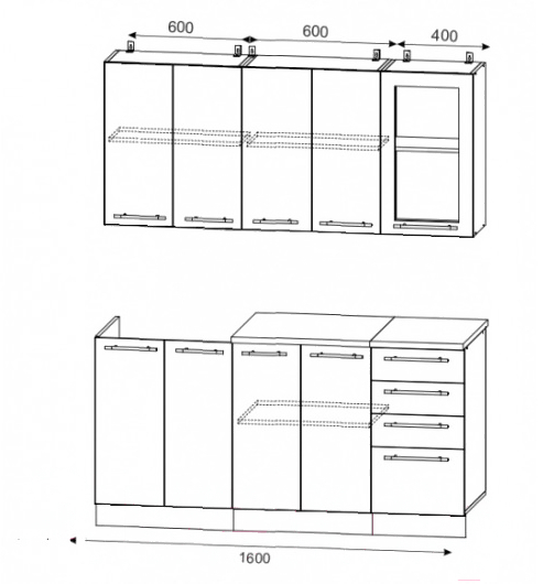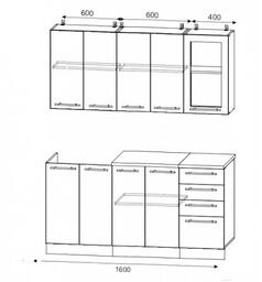 • Глубина нижних шкафов 60 см (с учетом столешницы, 50 см - корпус без фасадов)
