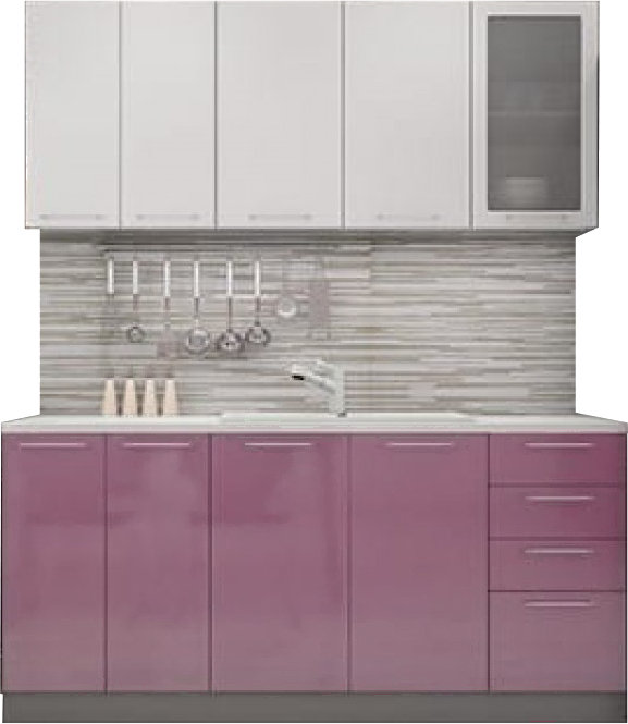 Готовая кухня ДСВ Олива 1.6 (белый металлик/сирень металлик)