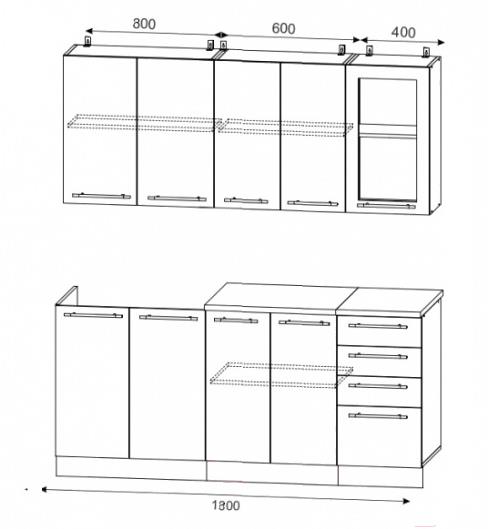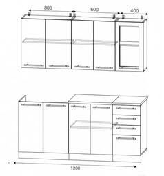 • Глубина нижних шкафов 60 см (с учетом столешницы, 50 см - корпус без фасадов)
