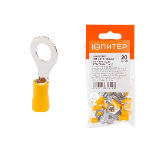 Наконечник Юпитер НКИ 6,0-6 кольцо 4,0 - 6,0 мм2 20 шт JPZ1-7203-03-20