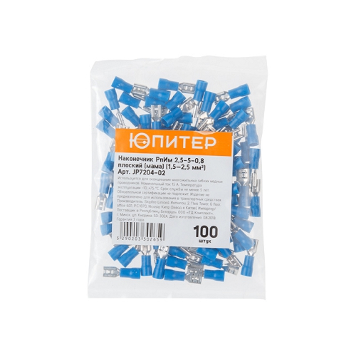 Наконечник Юпитер РпИм 2,5-5-0,8 плоский мама 1,5 - 2,5 мм2 100 шт JP7204-02