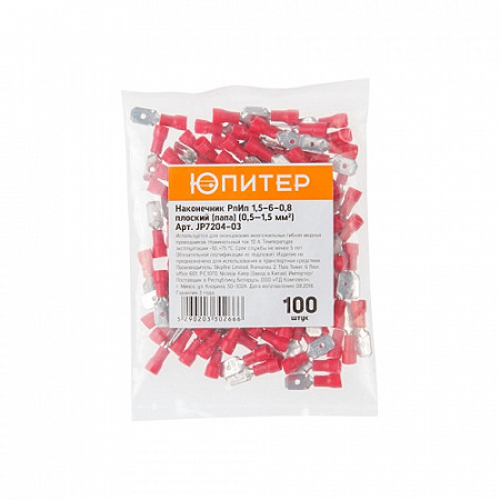 Наконечник Юпитер РпИп 1,5-6-0,8 плоский папа 0,5 - 1,5 мм2 100 шт JP7204-03