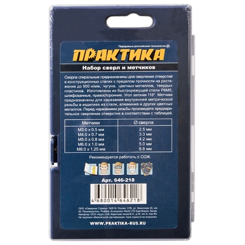 Набор сверл и метчиков ПРАКТИКА 646-218