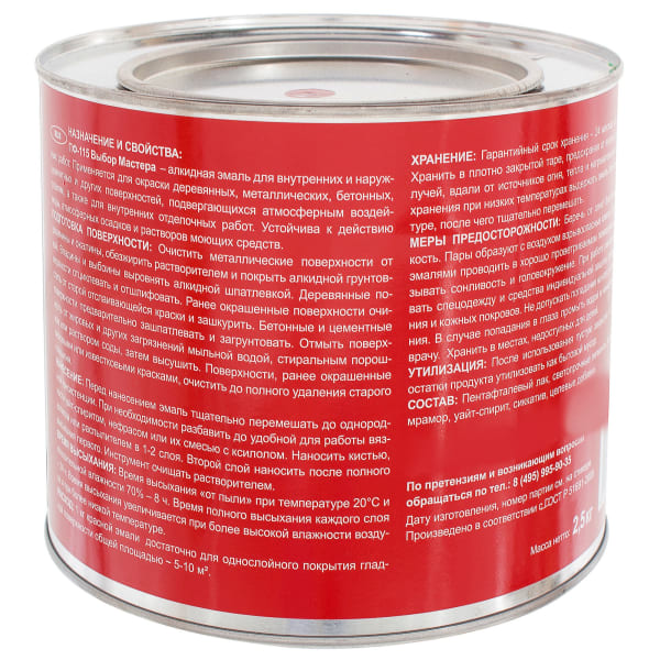 Эмаль ПФ-115 Выбор мастера цвет красный 2.5 кг