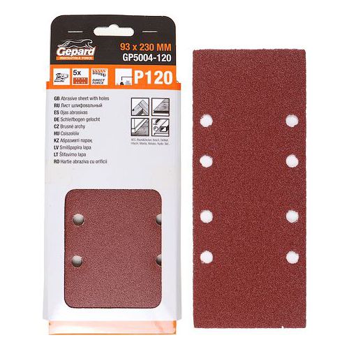 Шлифлист для дерева Gepard 9,3x23 см Р80 (5 штук) GP5004-80