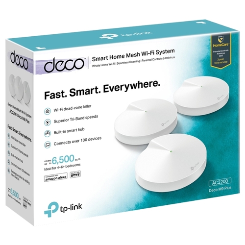 Дополнительная информациякомплект из трёх устройств для организации Mesh-сети бесшовного беспроводного доступа; габаритные размеры указаны для одного устройства; возможность управления устройствами умного дома; два режима работы - роутер и точка доступа; встроенный антивирус; поддержка Bluetooth 4.2 для IoT; порты LAN можно использовать в качестве WAN; поддержка Amazon Alexa; порт USB 2.0 зарезервирован для будущих функций (в последующих версиях ПО); три диапазона: 867 Мбит/с на 5 ГГц (1) 867 Мбит/с на 5 ГГц (2) 400 Мбит/с на 2,4 ГГц
