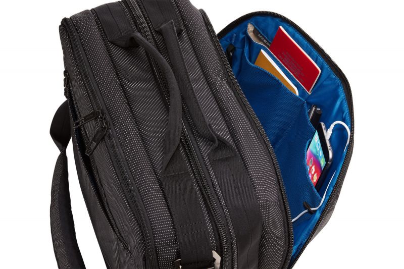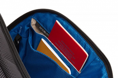 Удобно разместите небольшую электронику и аксессуары на передней панели с помощью накладных карманов, эластичных петель, сетчатого кармана с молнией и системой управления шнуром PowerPocket для зарядки устройств во время движения