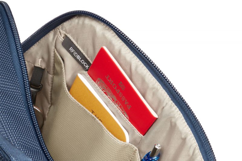Удобно разместите небольшую электронику и аксессуары на передней панели с помощью накладных карманов, эластичных петель, сетчатого кармана с молнией и системой управления шнуром PowerPocket для зарядки устройств во время движения
