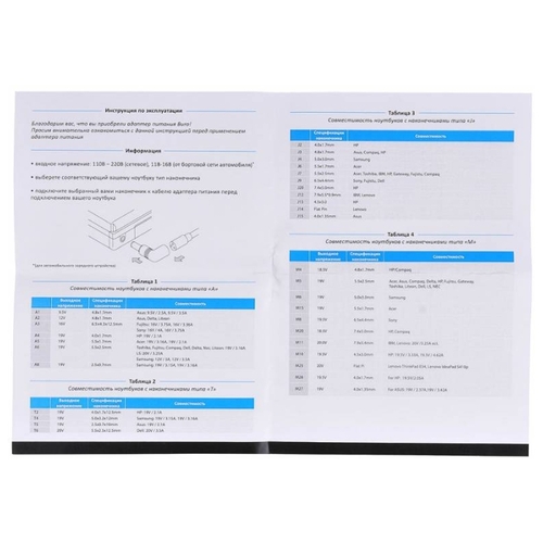 • Выходное напряжение 18.5 В, 19 В, 20 В, 19.5 В