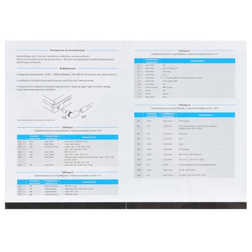 • Выходное напряжение 15 В, 16 В, 18.5 В, 19 В, 20 В, 19.5 В
