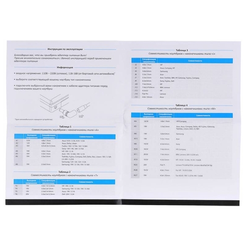 • Выходное напряжение 18.5 В, 19 В, 20 В, 19.5 В
