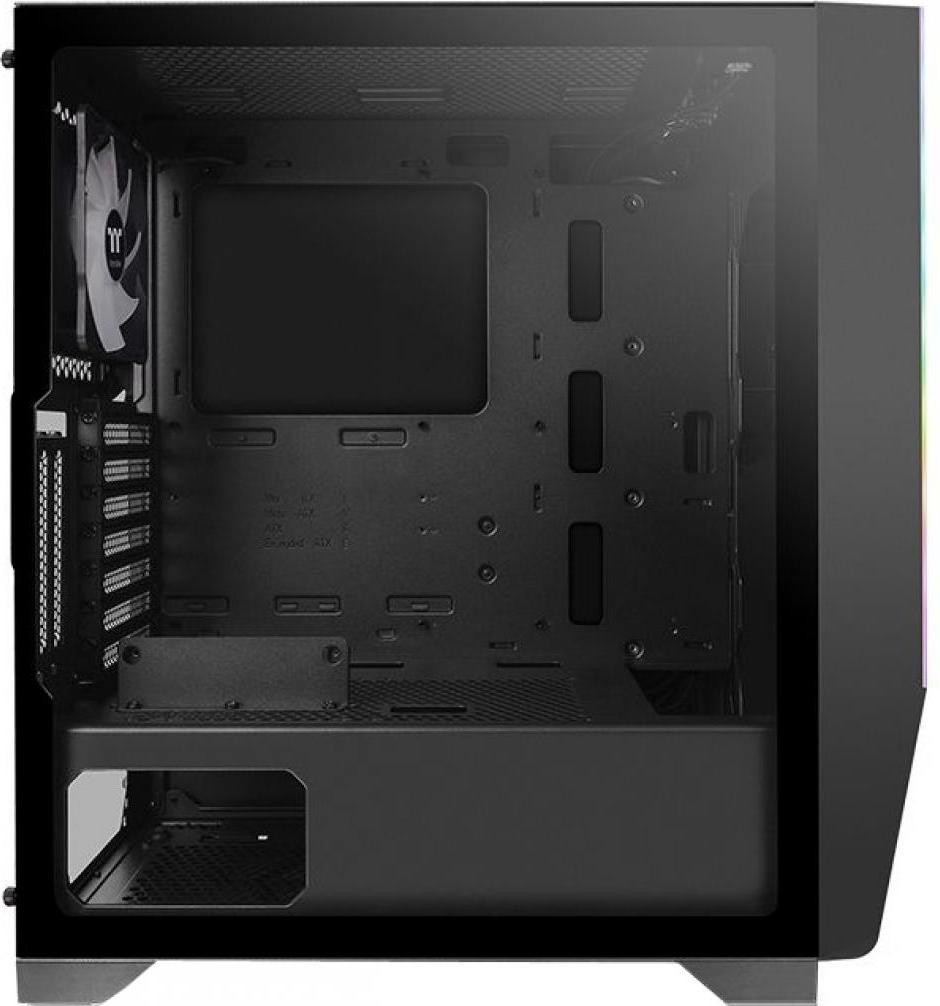 Thermaltake H550 TG виготовлений у типорозмірі Midi Tower та передбачає можливість встановлення материнських плат із форм-фактором ATX, Micro ATX і Mini ITX. Продумана конфігурація корпусу надає користувачу широкі можливості для підбору необхідних компонентів. Thermaltake S500 TG виготовлений зі сталі та має бокову панель зі загартованого скла. Остання дає змогу спостерігати за роботою компонентів і робить вигляд корпуса яскравішим - особливо система буде гарно виглядати при використанні планок пам'яті та відеокарт з підсвіткою.
