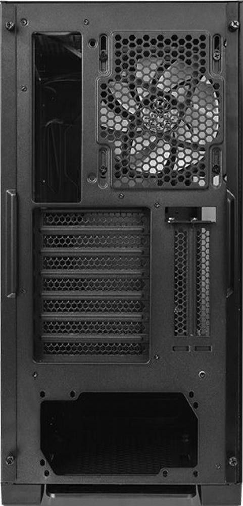 Виріб оснащений одним 120-міліметровим вентилятором ззаду з підсвіткою, яка може змінювати 7 світлових режимів. Дозволяється встановлення відеокарт і радіаторів у вертикальному положенні. Передбачені всі необхідні інтерфейси для зручного підключення периферійних пристроїв, гаджетів та накопичувачів.