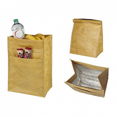 Сумка-холодильник иммитирующая бумажный пакет. Ламинированный нетканый полипропилен 110 г/м. Можно мыть и стирать.