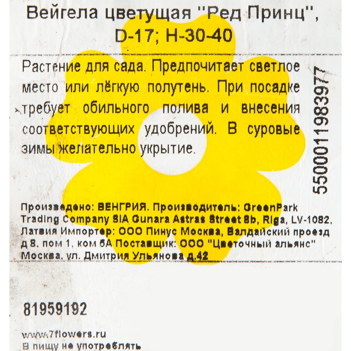 Вейгела цветущая «Ред Принц» d17/30-40