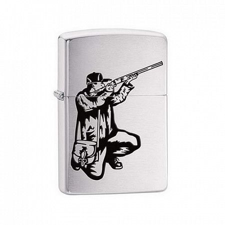 Зажигалка ZIPPO Охотник, с покрытием Brushed Chrome, латунь/сталь, серебристая, матовая