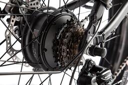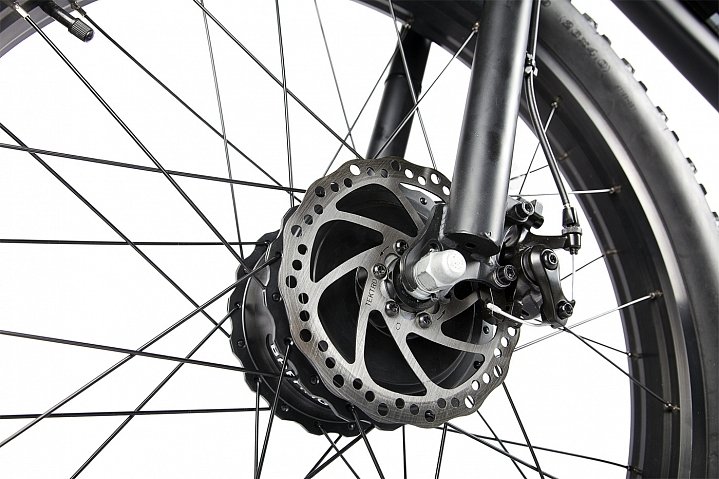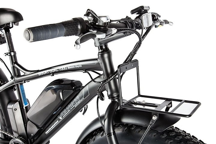 ДополнительноНовинка - полноприводный фэтбайк из нашей новой линейки Dark Series! Этот стильный красавец может похвастаться двумя мощными моторами. Оба работают независимо друг от друга, так что ездок сможет включать два или только один в зависимости от ситуации. Электровелосипед Volteco BigCat Dual New имеет сдержанный, но от этого не менее стильный дизайн, и создает ощущение благородства и добротности. Он одинаково хорошо подойдет и для езды по ровному треку, и для гонок по непредсказуемой экстремальной трассе с множеством препятствий. Не только наличие двух сердец-моторов делает этот электрический велосипед таким крутым. У него есть еще масса других, не менее замечательных достоинств: каждый из двигателей имеет мощность в 500W, что позволяет байку ехать со скоростью 40 км/ч; достаточно толстая, очень прочная и при этом легкая рама, способная выдерживать огромные нагрузки во время экстремального заезда; один заряд аккумулятора (48V 10.4Ah) обеспечивает поездку без задействования педалей на расстояние до 50 км; полный привод. Проходимость байка просто потрясающая − он не остановится там, где другой электровелосипед будет вынужден отдохнуть; задний багажник, на который можно положить ручную кладь (или усадить ленивого спутника); грузоподъемность в 110 кг Запустить мотор можно, просто приложив палец к сканеру отпечатка. Это еще и гарантия того, что никто, кроме вас, не сможет ощутить мощь обеих моторов этого сногсшибательного велогибрида. Ну а система сигнализации отпугнет злоумышленника, который попытается угнать ваш транспорт.