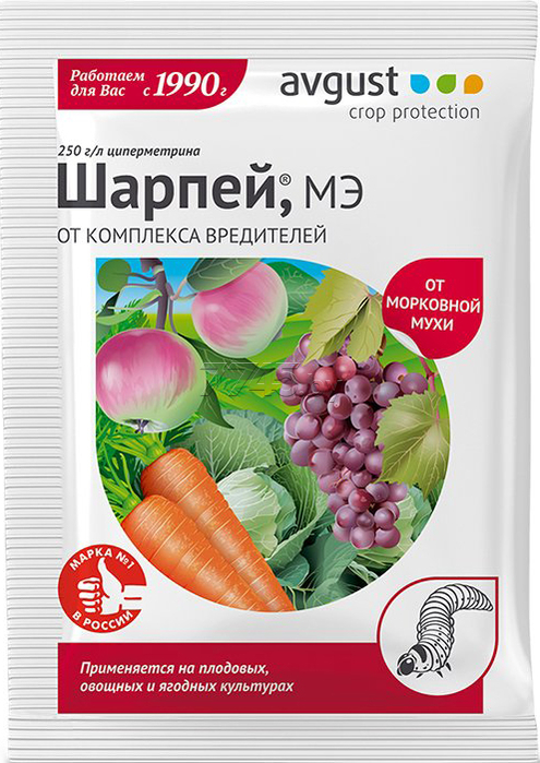 Инсектицид Шарпей МЭ AVGUST 10 мл – универсальный быстродействующий препарат от комплекса вредителей. Оказывает быстрое действие на вредителей – «нокдаун-эффект». Экономичен благодаря низким нормам расхода. Способен нарушать откладку яиц у взрослых насекомых и питание личинок. Имеет прогрессивную препаративную форму (микроэмульсия), устойчивую к воздействию высоких температур.