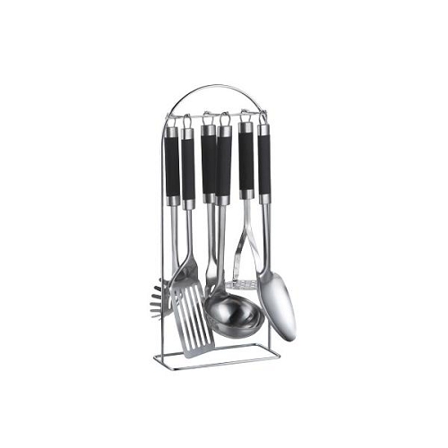 • Особенности Набор кухонных принадлежностей из 7 предметов: половник; лопатка; ложка для спагетти; поварская ложка; поварская вилка; картофелемялка; подставка.