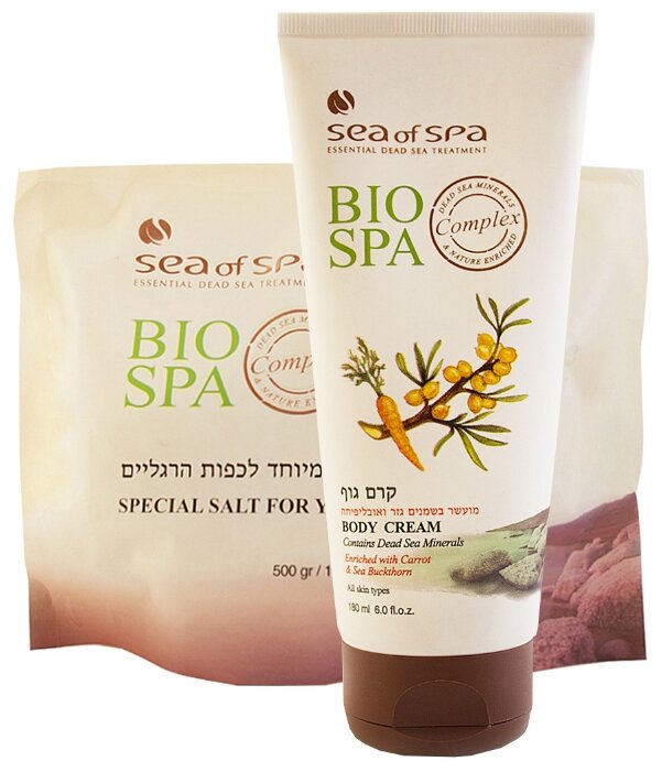 - В наборе крем для тела с маслом облепихи и моркови 180 мл, соль для ног 500 г