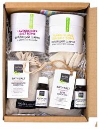 - В наборе бурлящий шарик Лаванда 110 г, бурлящий шарик Иланг-Иланг 110 г, эфирное масло Розовое дерево 10 мл, эфирное масло Лемонграсс 10 мл, морская соль Сила природы 200 г, морская соль Strong 200 г