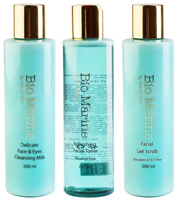 - В наборе деликатное очищающее молоко для глаз и лица 200мл., очищающий тоник для лица 200мл., пилинг-маска 200мл