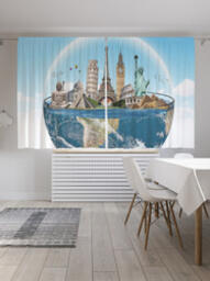 Шторы с фотопечатью "Планета с достопримечательностями" из сатена, 145х180 см