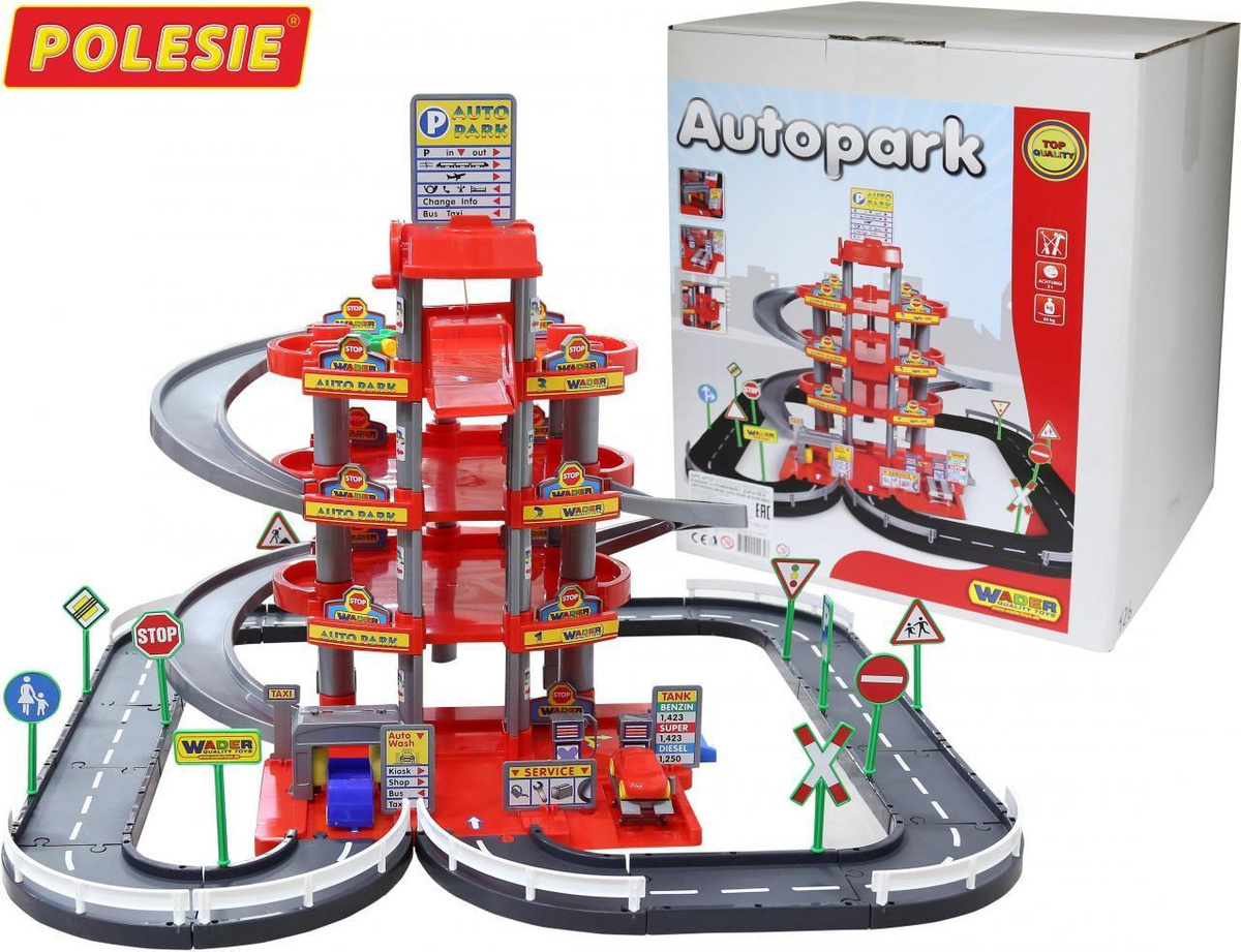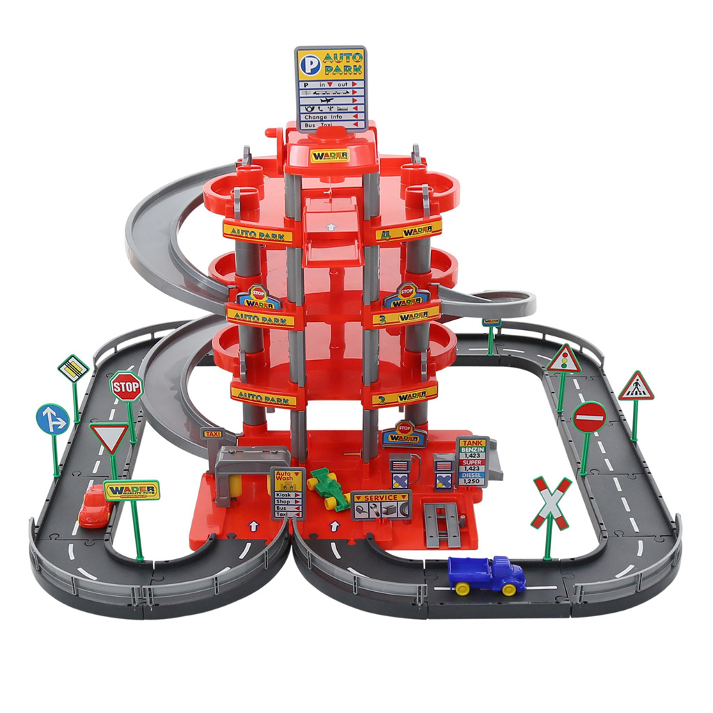 Паркинг 4-уровневый с дорогой и автомобилями (красный) (в коробке)