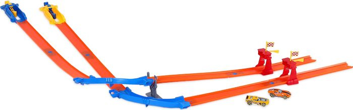 - Комплектация 2 гоночные машинки, сборные детали трека, катапульта, схема сборки