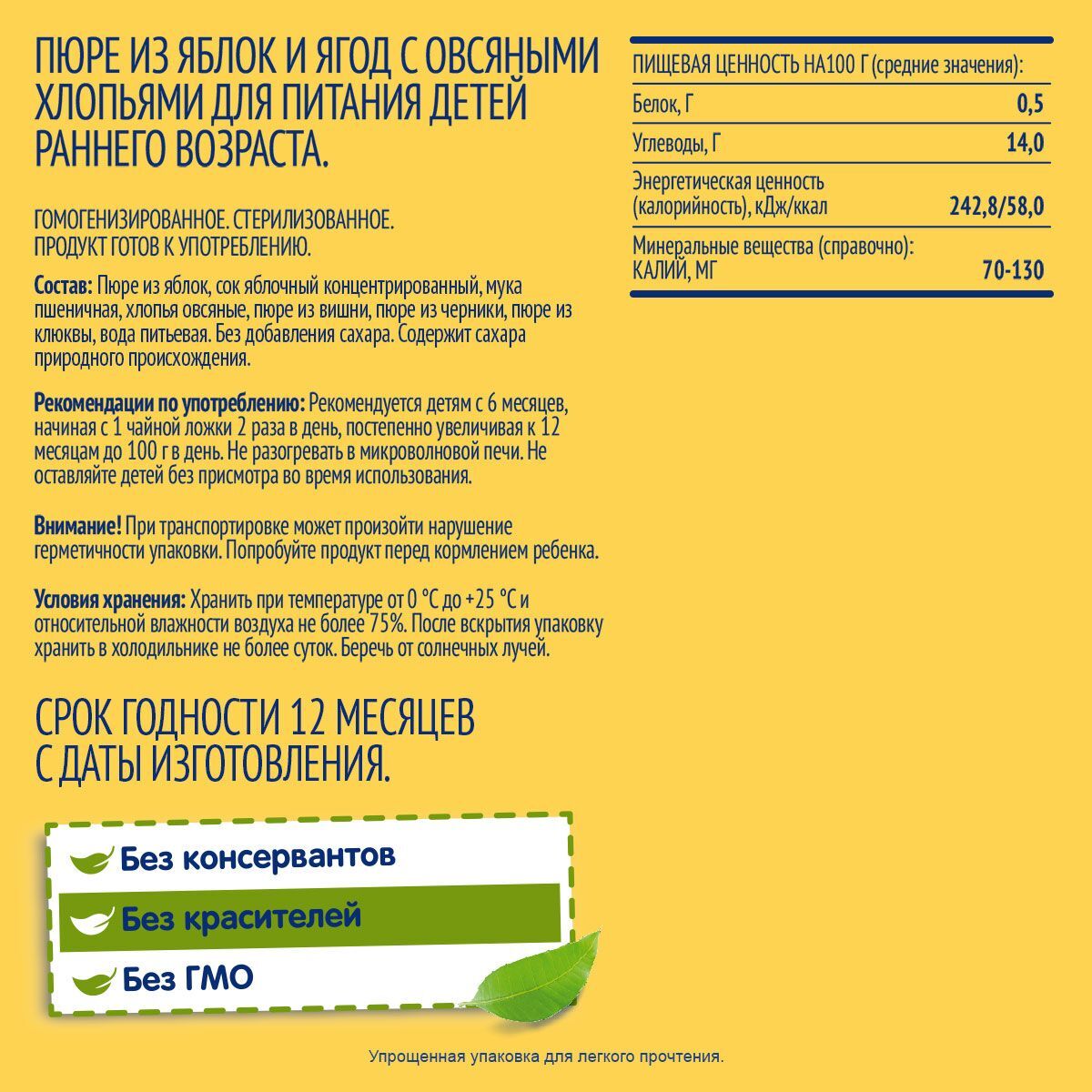 • Вид пюре Фруктовое, Ягодное