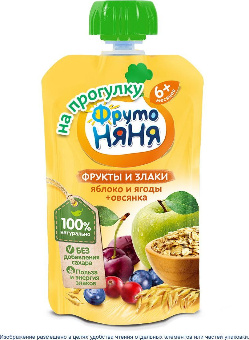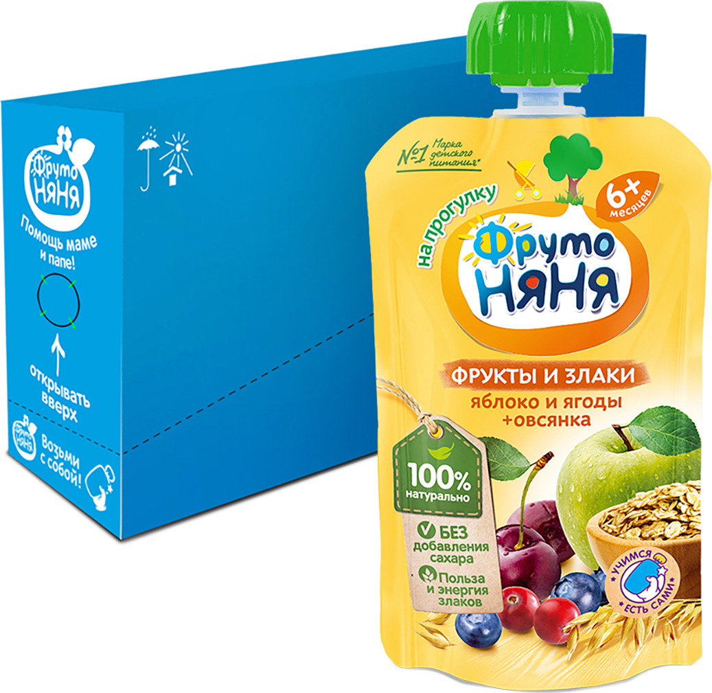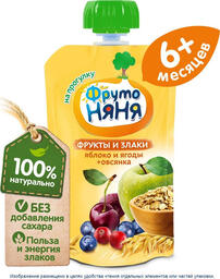Пюре ФрутоНяня из яблок и ягод с овсянкой с 6 месяцев, 12 шт по 130 г