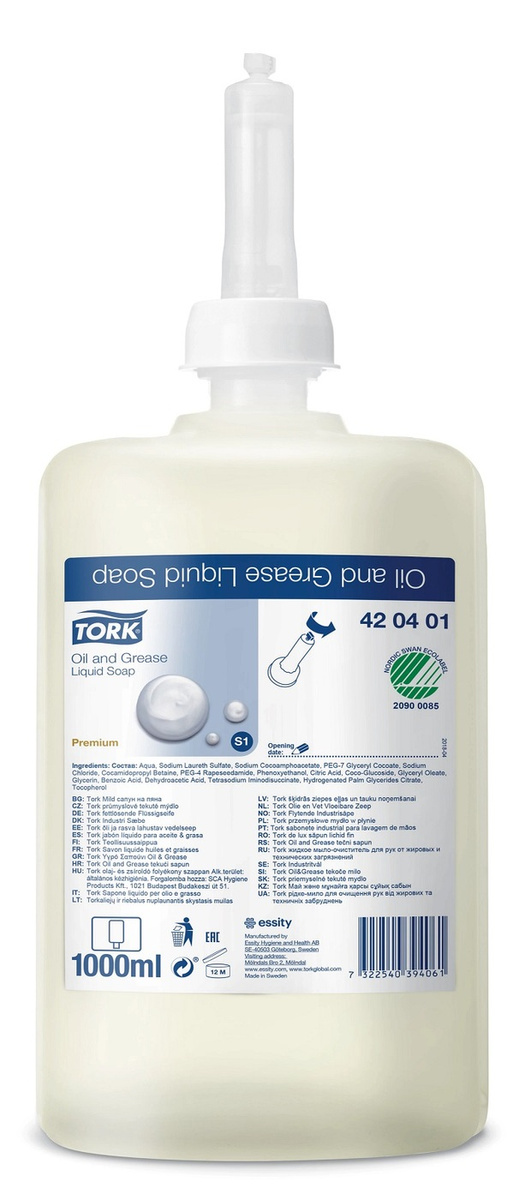 - Состав Категория качества - Premium. Бесцветное жидкое мыло - очиститель, не имеет запаха. Используется на различных производствах, в автосервисах и других предприятиях технической направленности для очищения рук от масел и грязи. Быстро растворяет жир благодаря содержанию специальных веществ. Не вызывает аллергии. Может использоваться через диспенсер с локтевым дозатором или без. 1л. Дополнительная информация Активная чистящая формула для устранения загрязнений с кожи рук. Не раздражает кожу. Новый гигиенический картридж значительно упрощает замену средства, предотвращает бактериальное загрязнение, а также сжимается при использовании, уменьшая на 70% количество отходов. Дозировочный клапан на 1 мл предотвращает перерасход продукта. Имеет европейские экологические сертификаты. Экомаркировка: Nordic Ecolabel.