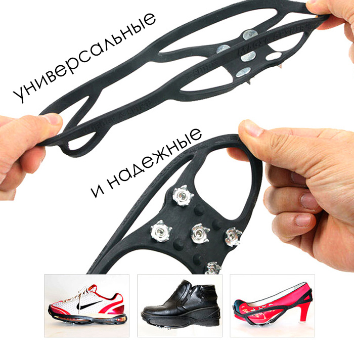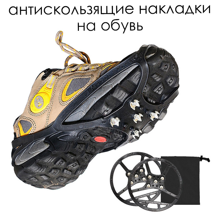 Антискользящие накладки на обувь с шипами, черные