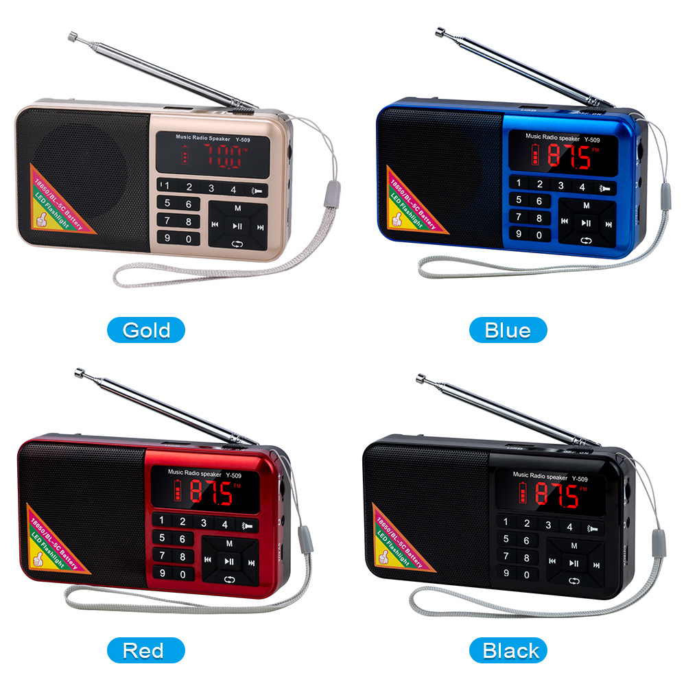 Y-509 Портативный FM-радио Мини Цифровой динамик Raido со светодиодным фонариком Экран MP3 Music Player