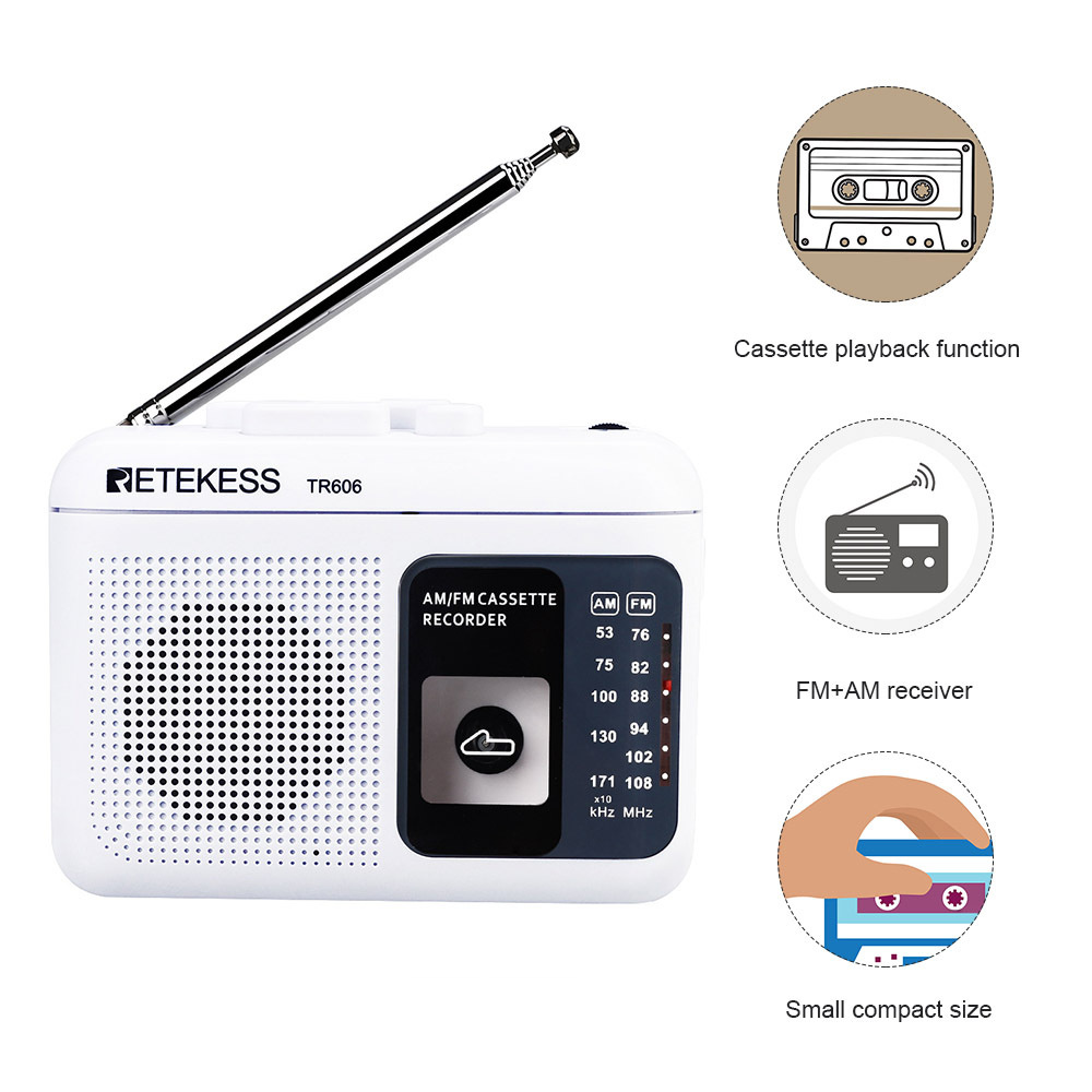 Retekess TR606 Мини Портативный AM / FM-радио Телескопическая антенна Радио с кассетным плеером Цифровое радио Динамик Воспроизведение Диктофон