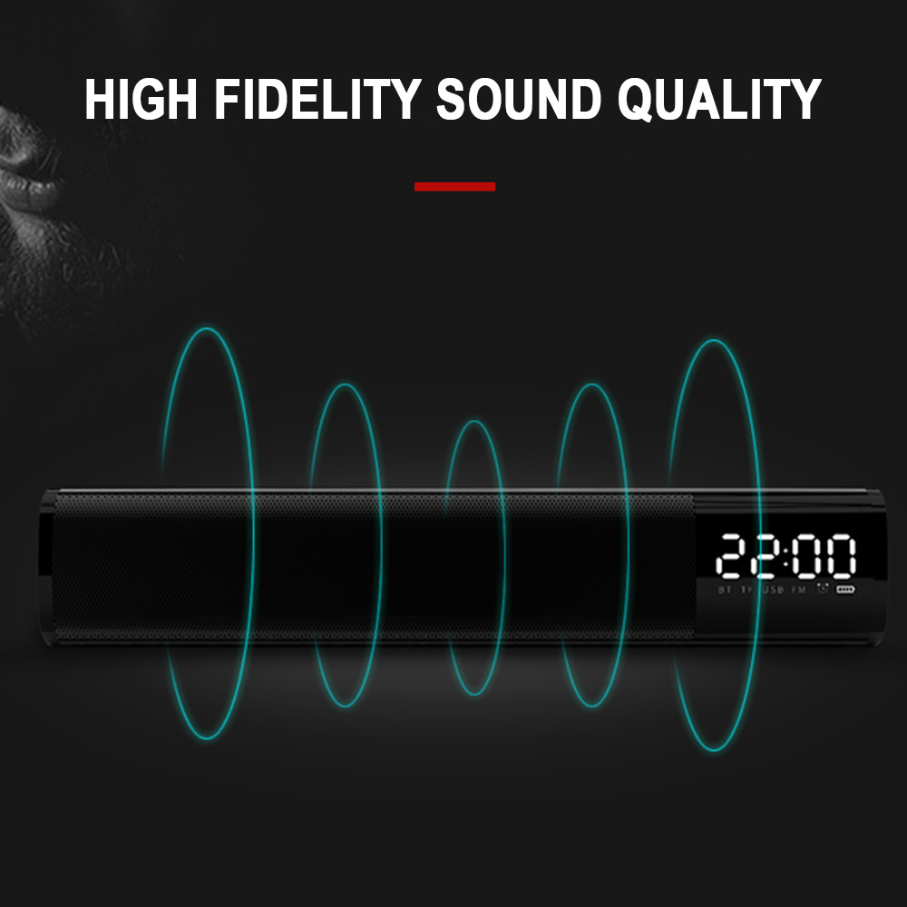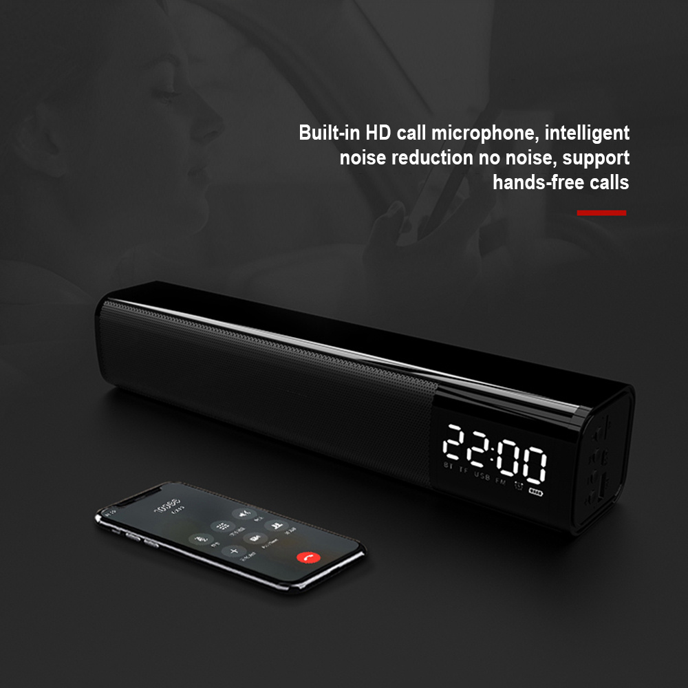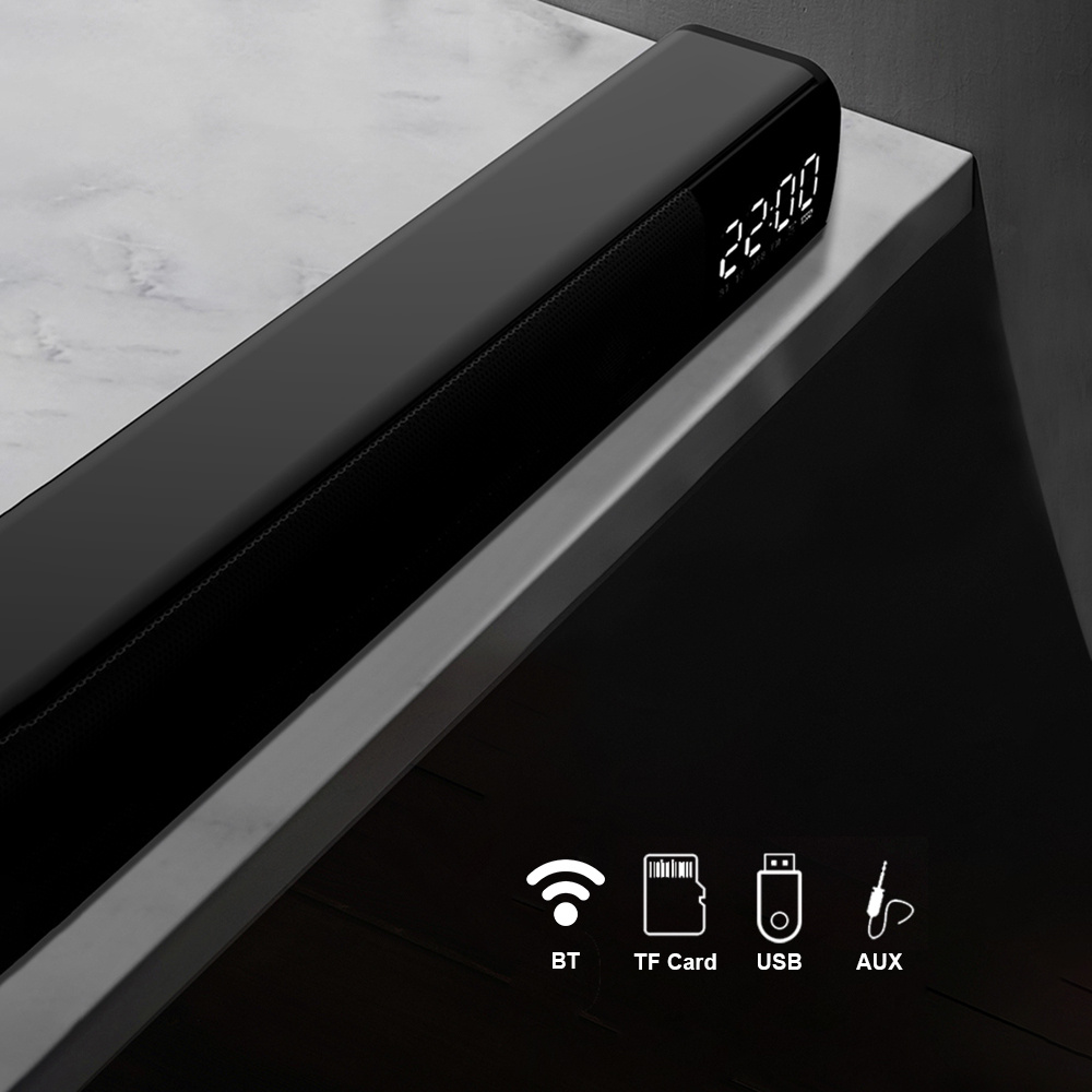 Bluetooth Soundbar Аудио плеер Беспроводной динамик Сабвуфер 3D Динамики объемного звучания FM-радио Часы TF USB для домашнего телевизора ПК