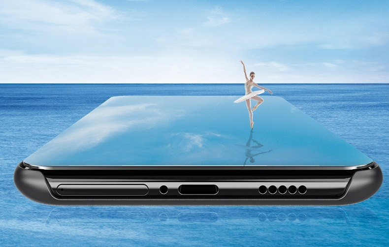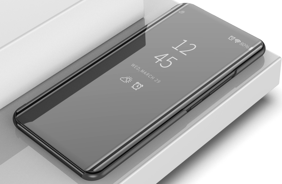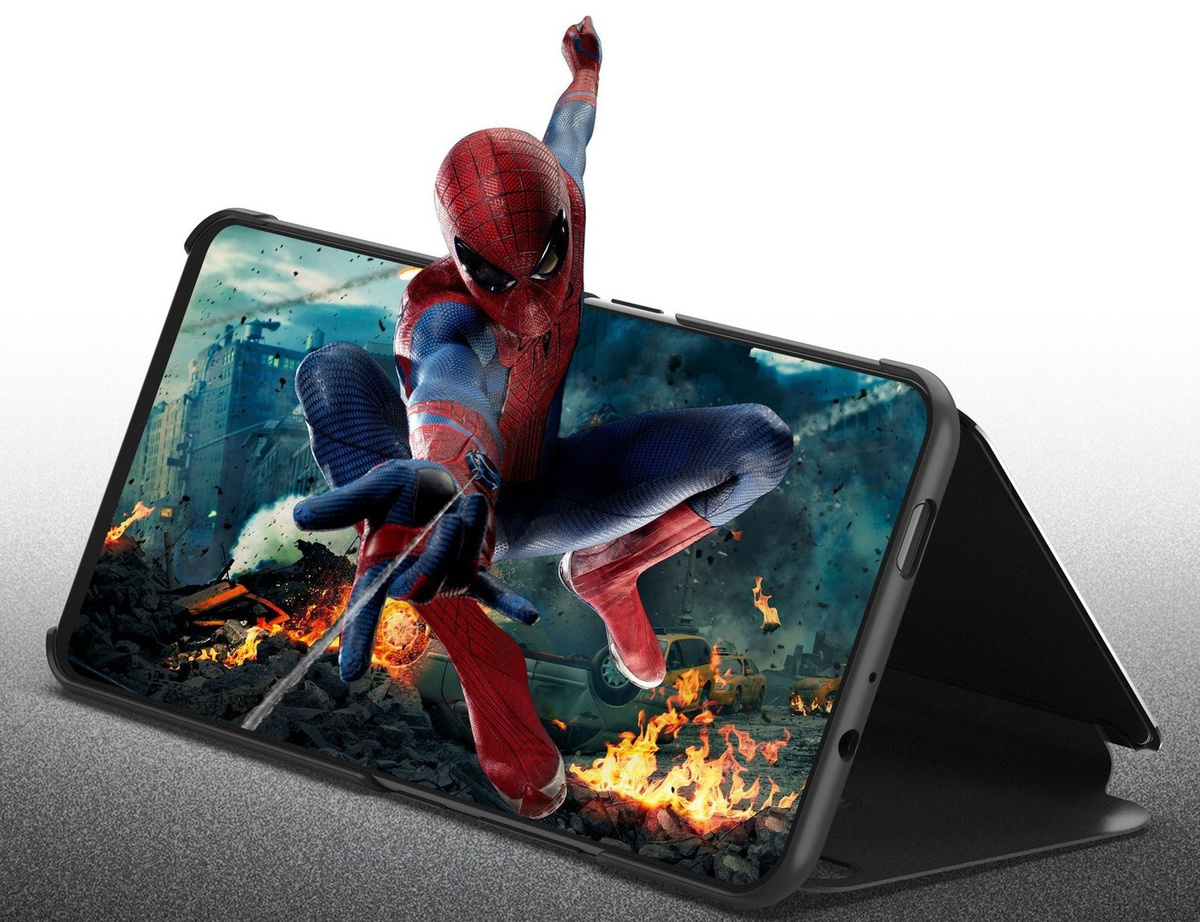Чехол-книжка MyPads для Vivo V17 с дизайном Clear View Cover с полупрозрачной пластиковой крышкой с зеркальной поверхностью черный