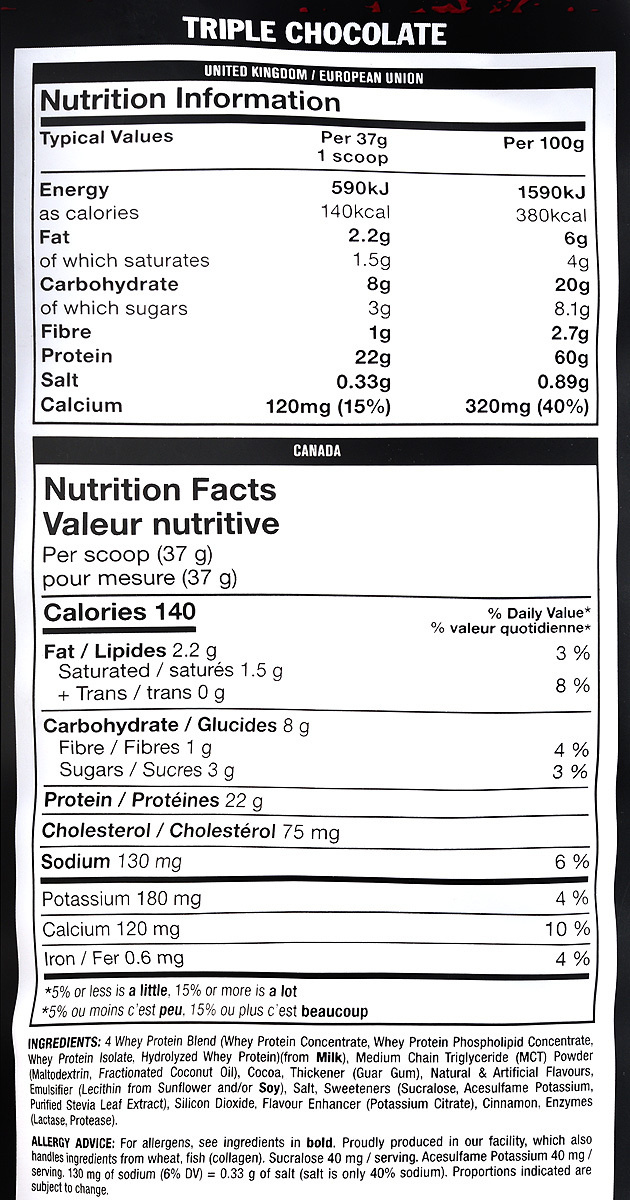 - Состав: Концентрат сывороточного протеина, изолят сывороточного протеина, инулин, ксантановая камедь, пептиды глутамина, натуральные и искусственные ароматизаторы, цитрат калия, ацесульфам калия, сукралоза, соевый лецитин.