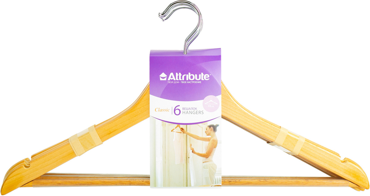 Набор вешалок для одежды Attribute Hanger "Classic", прямые, 6 шт