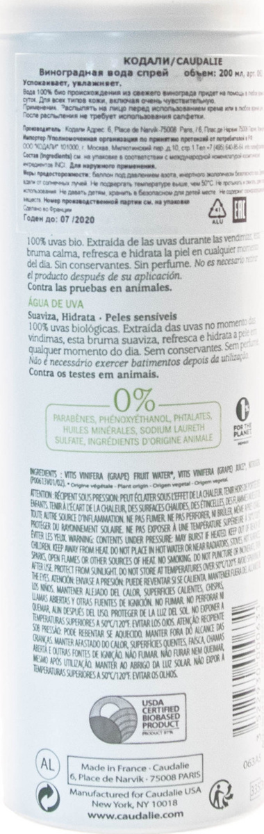 - Состав Vitis Vinifera (Grape) Fruit Water*, Vitis Vinifera (Grape) Juice*, Nitrogen (P00613V01/02). *origine végétale – растительное происхождение