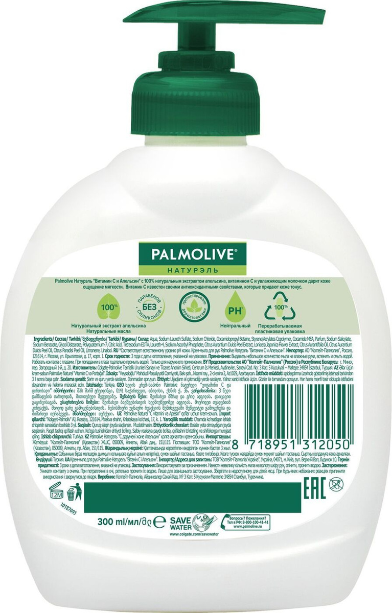 Palmolive Крем-мыло жидкое Натурэль Витамин C и Апельсин, для рук, 300 мл х 2 шт