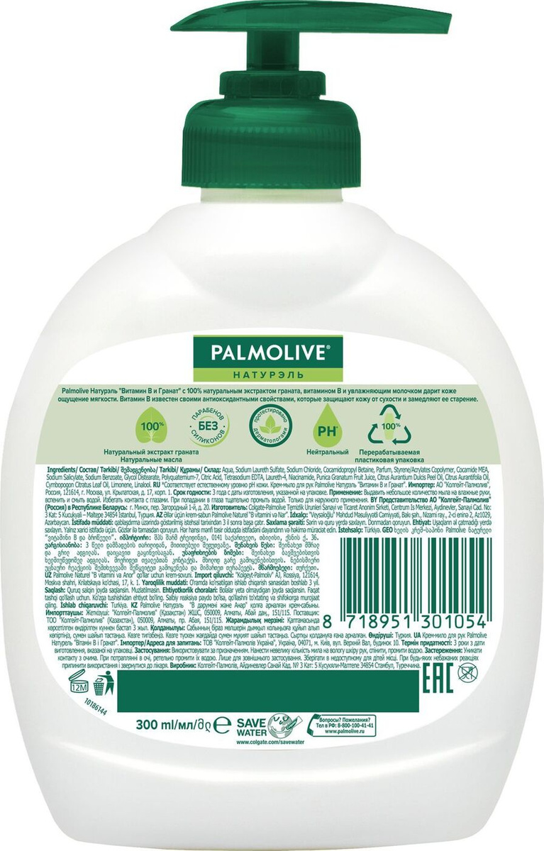 Palmolive Крем-мыло жидкое Натурэль Витамин B и Гранат, для рук, 300 мл х 2 шт