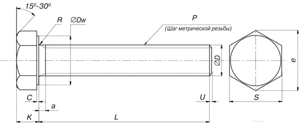 - Форма головки шестигранная