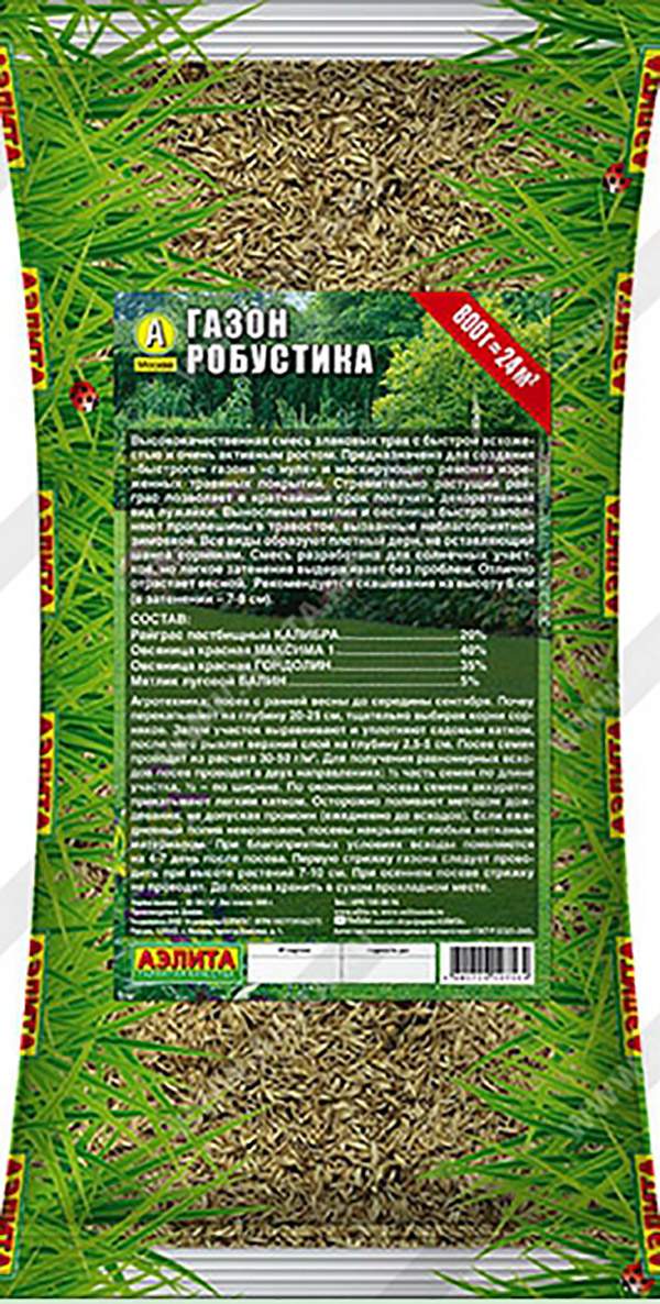 - Состав набора райграс пастбищный "Калибра" - 20%, овсяница красная "Максима 1" - 40%, овсяница красная "Гондолин" - 35%, мятлик луговой "Балин" - 5%.