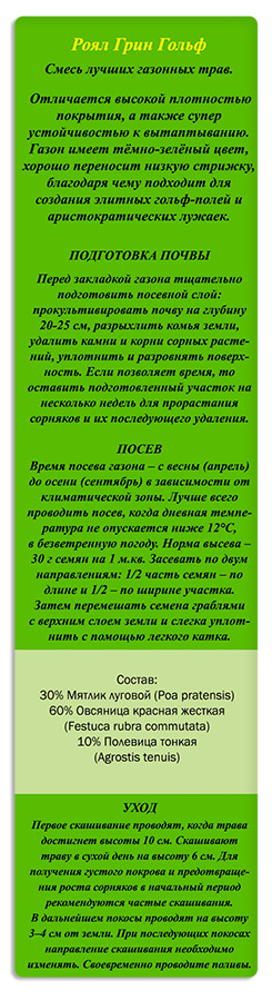 - Состав набора 50% Овсяница красная, 20% Овсяница красная жесткая, 15% Мятлик луговой, 10% Райграс многолетний, 5% Полевица ползучая.