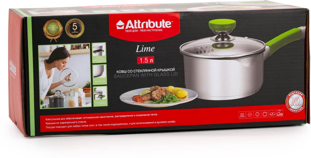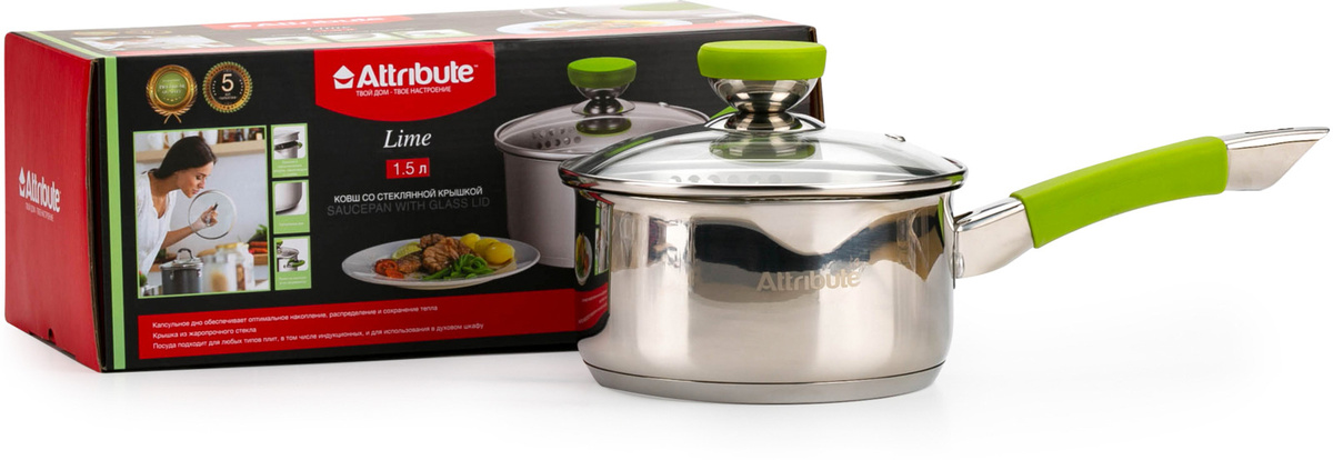 Ковш Attribute "Lime" с крышкой, 1,5 л