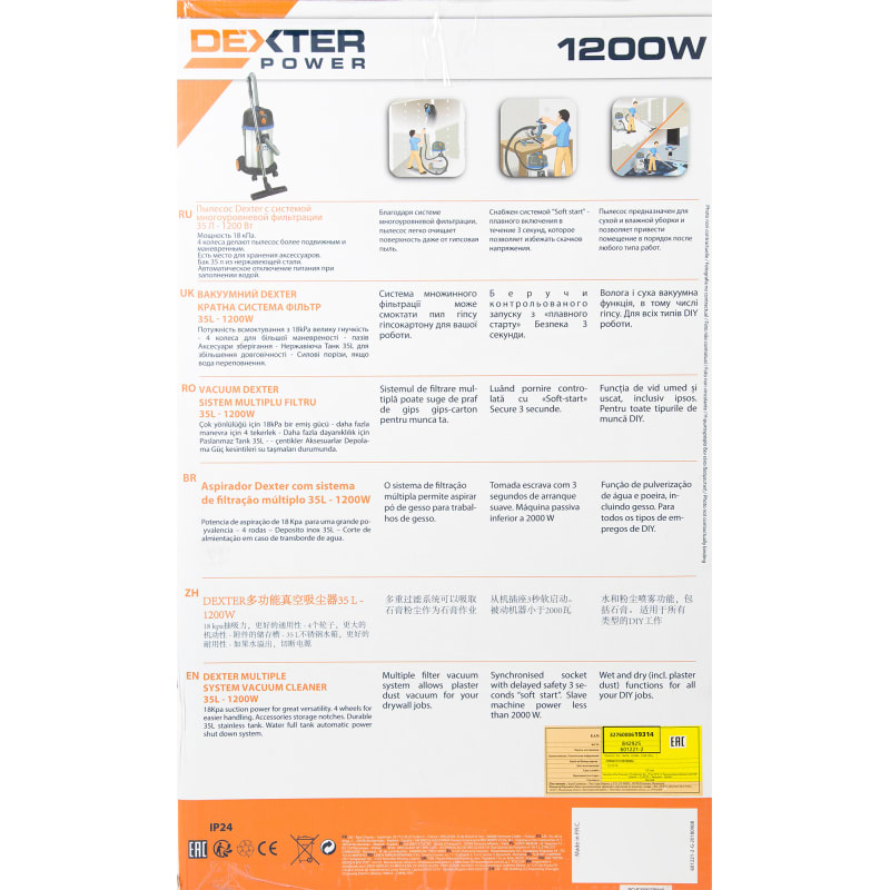 Пылесос Dexter Power YLW6239-DP, 1200 Вт, 35 л