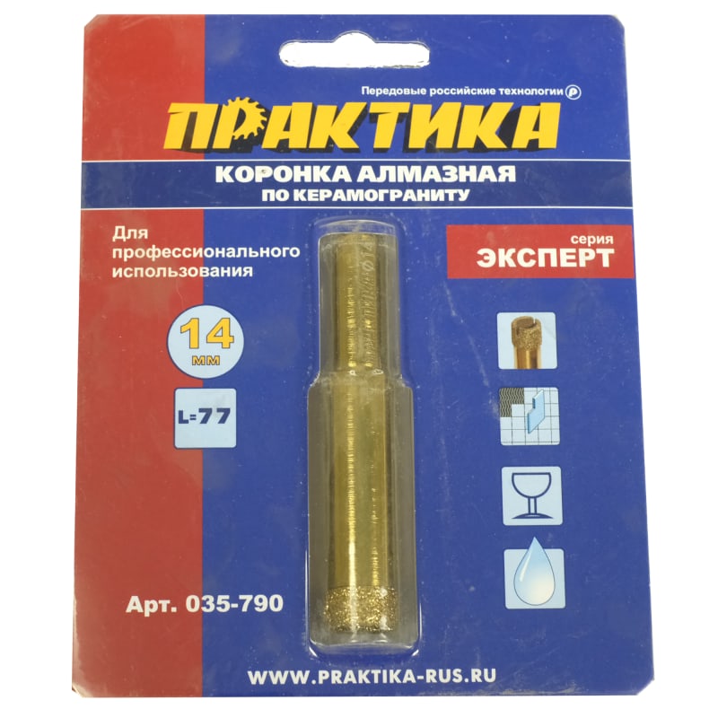 Коронка алмазная по керамограниту ПРАКТИКА Эксперт 14мм 035-790